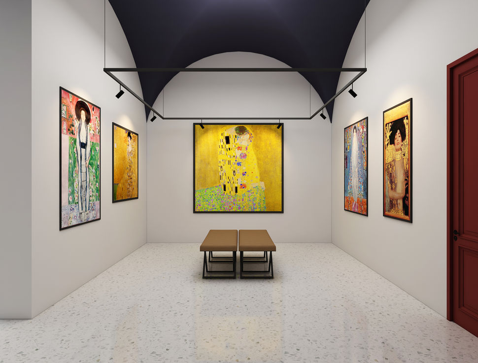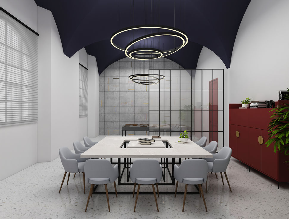 Commercial Interiors That Make a Statement : The design of this space juxtaposes bold classical elements with contemporary furniture, creating a unique blend of traditional and modern styles